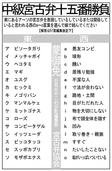 | 2012年11月9日 (金) 16:19 | 宮古弁 2007 12 mondai.jpg (ファイル) | 95キロバイト | Admin | 1 | ||