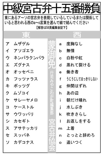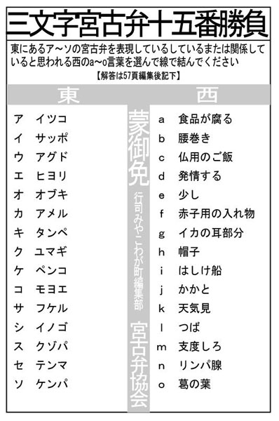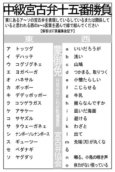 | 2012年11月9日 (金) 16:14 | 宮古弁 2007 03 monndai.jpg (ファイル) | 102キロバイト | Admin | 1 | ||
