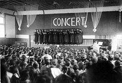昭和4年(1929)宮古町立実科高等女学校から町立を経て、県立高等女学校へと昇格したが宮女には校歌がなかった。そのため二代目校長・伊藤重蔵氏は昭和11年(1936)個人的に親交があった詩人・土井晩翠に作詞を依頼し、作曲を細川碧氏に依頼した。宮女の校歌は同年12月に完成し、翌年には晩翠自身が宮女を訪れ講演を行ったと記録される。それではそれ以前の実科高等女学校時代は校歌、あるいは応援歌等がなかったのか?という疑問が持ち上がるが今回の取材で集めた資料の中には昭和11年以前の宮女関係の歌についての情報はなかった。