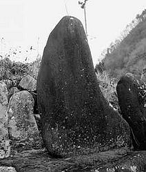 最後の石碑は先月も紹介した明治29年の三陸大津波の記念碑で、磯鶏石崎の石碑群にある海嘯記念碑だ。通常見かける津波関係の石碑は津波襲来に役立つ避難標語のような文が刻まれたものが多いが、今回の石碑は津波来襲前の状況を難解な漢文で記している。碑は上部に右読み横書きで海嘯記念碑とあり、中央に20字詰めの漢文碑文がある。碑文最終行には明治35年(1902)五月、磯鶏区横死者男廿七女三十一、流失家屋五十三戸水没十戸とあることから、この碑が津波から7年後に災害による死亡者の七回忌を記念して建てられたことがわかる。