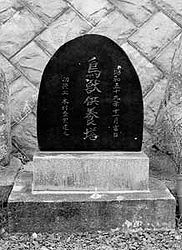 昭和59年、近内小学校が閉校し、近年は近内地区と西ヶ丘団地は合体してひとつの町を形成しようとしているが、近内薬師神社の参道であり蜂ヶ沢を経由して山口へと通じる街道筋は昔の近内のメイン通りであった。ここには多くの石碑が建ち並んでおり、その中に愛馬供養塔という石碑があった。石碑は黒の御影石で比較的新しいものだが、近内には宮古地区で最後まで馬を飼っていた農家や、現在は朽ち果てているが宮古市で唯一、現存する南部曲がり家もあることから馬との関わりは深い。碑は右に昭和四十三年建立(1968)、中央に愛馬供養塔、左に初穂主・伊藤吉助・部落二十六名・吉田石材店とある。