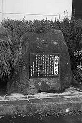 次の石碑は昭和30年代から40年代にかけて田畑等を埋め立てて新しい宅地にした西町にある。石碑は西町佐々木建設前の交差点にあり、高さ1メートルほどの自然石の岩塊に碑文を刻んだ御影石をはめ込んだもので「一本柳の跡」とある。言い伝えによるとこの場所に柳の大木があり、江戸時代の旧山口村ではこの付近を一本柳と呼んでいたらしい。碑文では年代不詳だが江戸時代に宮古地方を襲った「ヨダ(津波)」により山口川を逆流する波に乗ってきた「ダンベ(魚運搬用の舟)」をこの地にあった一本柳に繋留したという伝説があったことを伝えている。建立は平成元年六月吉日で山口の有志建之とある。