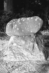 次の石碑は小沢の旧黒森神社参道入り口にある。石碑は台形型のもので前面に御体石、右に寛政九年(1797)八月廿十九日、左に黒田村・市兵衛とある。この石は一説によると「やすみいし」と呼ばれ、黒森神社に参詣する南部藩公が腰掛けるために奉納されたと伝えられる。しかしながら「休」と「体」は文字が違うし、南部藩が黒森神社に対して信仰心があったことは認められるが藩公が直接黒森神社に参詣したという事実は不確定だし、デザイン的にも殿様が腰掛けるように作ったとは思えない。おそらくこのオブジェには別な意味が込められているのだろう。