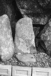 最初に紹介するのは北川目の長沢川に架かる石橋の袂にある橋供養塔だ。石碑は1メートル弱で中央に、橋供養、林宗六世、右には宝暦八寅年(1758)、左に三月廿五日とある。林宗六世とは橋野村(現・釜石市橋野)鶏石山・林宗寺六世であり、宝暦元年(1751)42歳で一念発起し隠居後の人生を宮古・下閉伊沿岸の道路開発と難所開削に捧げた江戸期の名僧・牧庵鞭牛のことだ。鞭牛は延享4年(1747)に林宗寺六世となりこの年に林宗寺を現在の場所に移転させ普山式を挙行、その4年後の宝暦元年には隠居し凶作と飢饉であえぐ村々を廻り独自の宗教観から道路開発の重要性を見極める。元禄を経て享和から宝暦へ向かう江戸中期、10代後半、あるいは20代前半で出家したとされる鞭牛は、寛保2年(1742)33歳で種市村の東長寺の住職となる。そんな鞭牛が一人の宗教家として成長する過程で多くの僧と接触したと考えられ、その中で同時代を生きた船越村大浦で苦行の末に即身成仏した智芳秀全(ちほうしゅうぜん)、宮古(岩泉)門村の不昧庵で即身成仏した悟庵祖了(ごあんそりょう)らが実行した、苦行に耐え生身のまま即身成仏する宗教思想ではなく、相次ぐ飢饉で興廃した村を廻り命ある限り(天明2年73歳没)、道路整備と難所開削に打ち込むことで庶民の暮らし向上を願う宗教思想の昇華を願ったと考えられる。