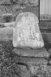 次の石碑は江山寺山門石段左脇の六地蔵と並んで立つ地蔵菩薩が載った墓碑だ。この石碑は数年前の「梵字のある石碑シリーズ」でも紹介したこともある。碑は正面中央に胎蔵界大日如来の真言種子である梵字「ア」があり、その周りを25文字の梵字が囲んでいる。この梵字は光明真言という呪文でこの真言を百回唱え土砂を加持し死者の上に撒けばその加持力によって死者のあらゆる罪が滅罪し西方浄土へ往生できるとされる。事実、この石碑には二人の戒名が刻まれ、円形に配置した光明真言の下に、百萬遍とあることから、死者の追善供養として石碑を建立し光明真言の百万遍で成仏を願ったものと考えられる。戒名は到運月溪禪信士、實英姉位禪信女。施主は磯鶏村の二十代大伊綜兵衛。建立年は天保十六年(1844)亥年四月だ。