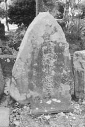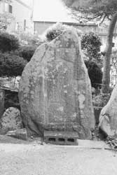 次の石碑は山門脇の石碑群の中にある。中央に三陸海嘯横死者精霊、右に明治二十九年六月十五日、左に旧五月五日夕、施主・金浜若者中とある。明治29年の三陸大津波は6月15日の午後7時33分20秒に起きた、北海道から東北、関東に及ぶマグニチュード7.6の激震による津波だ。記録によると地震直後、北方海上から数回にわたり轟音が響きやがて雷鳴のような音をたてて津波が押し寄せ第一波で沿岸の村は津波に飲み込まれた。その後、数回にわたり激震があり朝まで合計7回の津波が青森、岩手、宮城の沿岸を襲った。この津波で旧田老町は336戸が流出、1859人の死者を数えた。宮古で最も被害が大きかったのは金浜、高浜で次いで石崎、飛鳥方、神林、白浜で流出家屋121戸、死者96人だった。石碑は津波の翌年か数年後に死者を弔うため建立されたものだ。