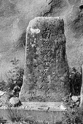 次の石碑は北の又と亀ヶ沢の中間の道路沿いにある念仏講の石碑だ。中央には南無釈迦牟尼佛、右に明治二十二年(1889)、左に四月八日、講中とある。次の石碑も地区の念仏講によって建てられたものでやはり北の又と亀ヶ沢を結ぶ道路沿いにある。石碑は中央に南無阿弥陀佛、右に昭和二卯年、左に北の又講中とある。