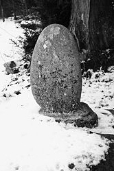 次の石碑は白浜から月山へ向かう自然遊歩道入口の白山神社脇にある石碑だ。碑は中央に牛頭天皇、右に六月十七日(年代不明)、左に法経人、村中、刈屋ヱキとある。社は近年改修されたらしい中規模のもので急傾斜のわずかな敷地に西向きで建っている。地区民によると祭礼は毎年6月の第三日曜日だという。  最後の石碑は重茂街道沿いにある白山神社境内の石碑群の中にあるものだ。碑は中央に八大龍王、右に大正十四(1925)年、旧五月十七日、左に下川市太郎建立とある。八大龍王は龍神、竜宮、水神、滝信仰などが合体した水に関係する信仰で主に漁業関係に厚く信仰される。