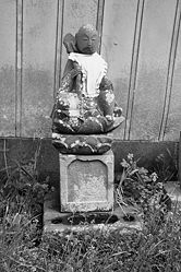 古来、人は死んで三十三回の供養を終えると仏はその家を護る先祖霊となり盆などの仏事ではなく正月の御歳神として家に迎えられるというのが日本の宗教観念の基本だ。そのため昔は死者を家の周りに埋葬した。これを屋敷墓地と呼び今でも農村部に行くと見られる。これをもう少し進化させたのが各地区の公葬地であろう。これは自宅傍に埋葬する土地がないというより、葬られた仏も地域の集合体であり未来永劫その地域を護るであろうという意味が込められている。またこれらの墓地は往々にして昔の村境であり、村への悪神、厄神の侵入を防ぐ塞ノ神として機能しているとも考えられる。寺であれ、旧村単位の公葬地であれ、時を経ればいくつもの仏が埋葬される。そのような場所には追善供養の石碑や地蔵菩薩などが建ち、その後、道路普請などで街道筋の西国塔なども集まってきて石碑群を形成する。今月はそんな旧村単位の墓地周辺の石碑群にある地蔵菩薩を巡ってみた。