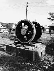 最初の写真は旧宮古機関区入口にある蒸気機関車の動輪をあしらったモニュメントだ。コンクリートの台座に枕木を固定しそこに実際のレールを置き蒸気機関車の動輪を載せている。車輪の直径は約1メートルほどで台座前に「動輪の塔・昭和48年10月」とレリーフされたプレートが置かれている。48年といえば山田線が全線ディーゼル化したのが45年だからその3年後の建立だ。それまで働いた蒸気機関車がスクラップになるためその主要部品で山田線の歴史を後世に伝えようと設置したものだろう。