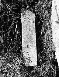 写真の石碑は境田町ドラックストア裏附近の空き地に集められた石碑だ。これらの石碑は震災前もこの周辺に建っていた石碑で、震災により倒れたり台座を失ったものを再度集めたものだ。石碑が置かれている場所は藩政時代、山田町から南下する大槌通の旧浜街道があった場所で、石碑群から織笠方面へ向かう峠は三本松と呼ばれ江戸宝暦期に牧庵鞭牛和尚が開削したという峠だ。そんな経緯もあり旧浜街道沿いには小祠などの信仰媒体や石碑群も多く写真の石碑群もそのような歴史背景のもと、当時の山田村の南の塞ノ神として建立されたものだろう。今回は約10基ほどの石碑の中から特徴のある数基を紹介する。石碑は横倒しになっており物によっては側面や背面の文字は確認出来ず、また、津波による破損もあり年号等は肉眼で読める範囲での紹介となる。