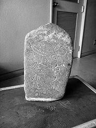 次の石碑は山田町豊間根の長内地区にある卵塔形の変わった石碑だ。おそらく石材は川から拾い上げた自然石と思われラグビーボールよりふたまわりほど大きなもので、比較的太い筆跡で萬霊(略字・第三水準)とあることから三界萬霊塔と思われる。文字は石碑の前面いっぱいに書かれ建立年代や施主の記載はない。長内地区最深部には以前十二神山の山腹から湧き出る鉱水を使った長内鉱泉という施設があったが現在は営業していない。ただし隣接する嶋田地区の嶋田鉱泉は現在も営業しておりおおくの湯治ファンで賑わっている。十二神山の山腹には先月紹介した歌のある石碑で紹介した光山温泉岳泉荘もありこの山系には薬水が多い。元々十二神山の由来である十二神将は現世利益と医術や薬を司る薬師如来に使役される武人であり、霊水、薬水に関係が深い薬師如来に由縁するもだろう。